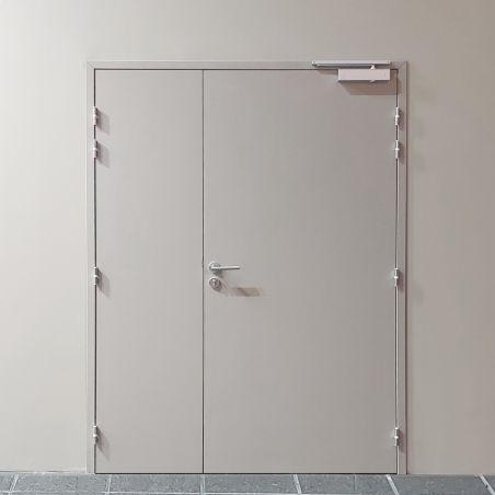 TER 200 sur-mesure, utilisé en tant que porte intérieure simple action, adapté aux bâtiments recevant du public ou des travailleurs. Cette porte en bois est fournie avec huisserie, serrure, 2 portes battantes dans son emballage individuel. TER 200 est monté sur charnière universelle de 130mm, simple action.